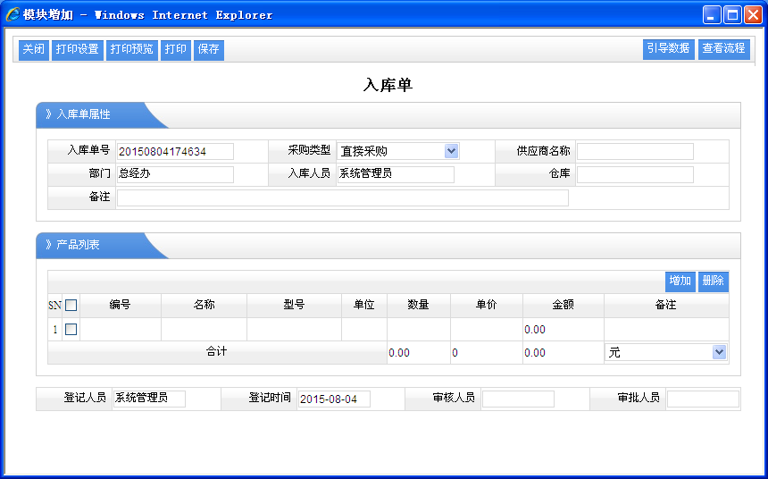 就是收到供應(yīng)商的產(chǎn)品進(jìn)行采購入庫,其增加的數(shù)據(jù)可以在“入庫單表”中查詢。