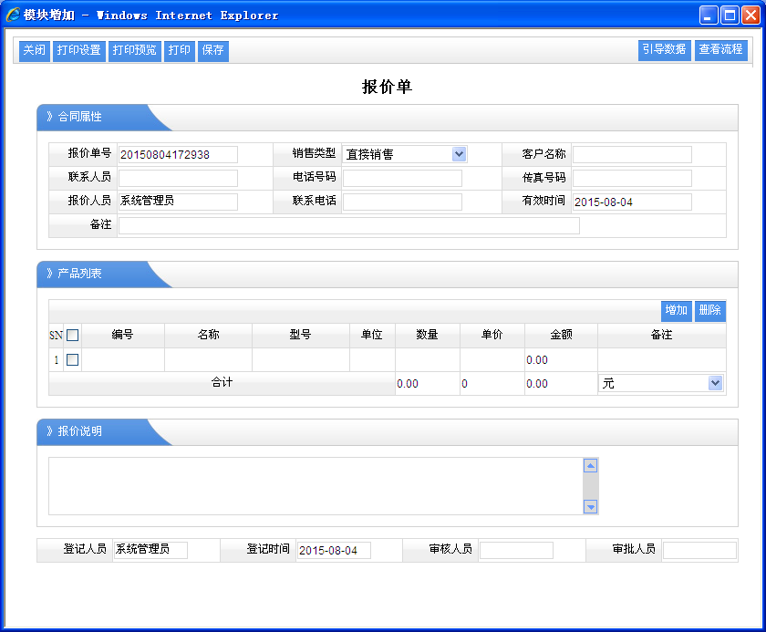 是向客戶進(jìn)行的簡(jiǎn)單報(bào)價(jià)登記管理。