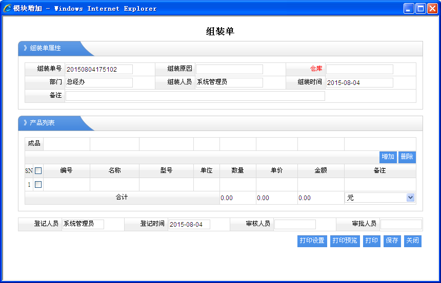 這跟組裝單剛好是一個(gè)反過程,把大的產(chǎn)品折成多個(gè)小的產(chǎn)品。其增加的數(shù)據(jù)則在“折卸單表”查詢。