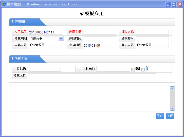 4、考核人員:如果是單應(yīng)用就選擇一個人員,如果是多應(yīng)用則可以選擇機構(gòu)部門,以及多選擇人員。