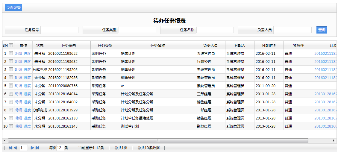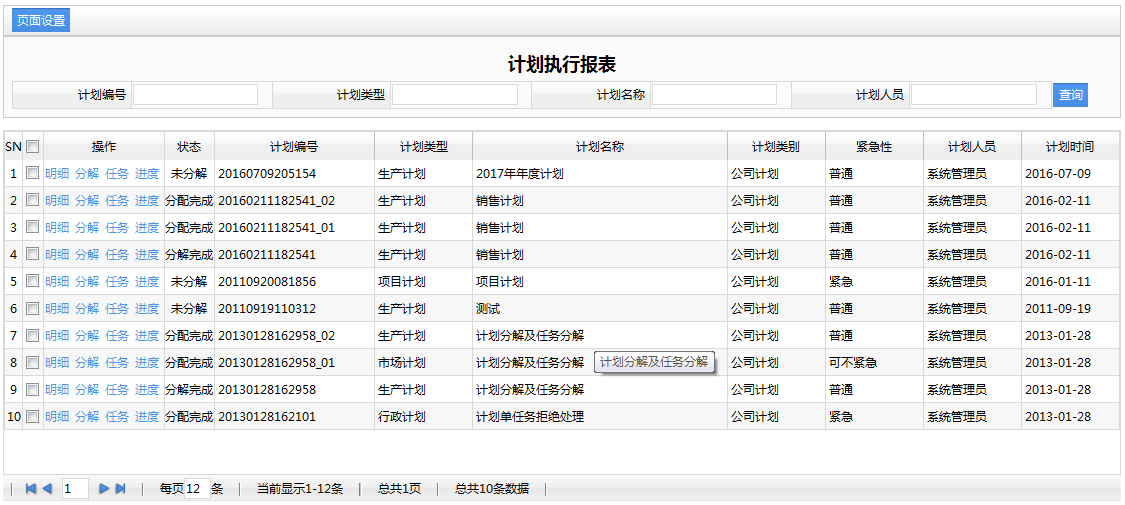 計(jì)劃執(zhí)行是對(duì)該計(jì)劃的執(zhí)行情況;在這里如果要對(duì)計(jì)劃進(jìn)行分解,分配任務(wù),以及查看計(jì)劃的執(zhí)行進(jìn)度, 需不需要審核,可系統(tǒng)管理的系統(tǒng)設(shè)置的是否審核,來(lái)決定是否需要審核,審批才能執(zhí)行計(jì)劃