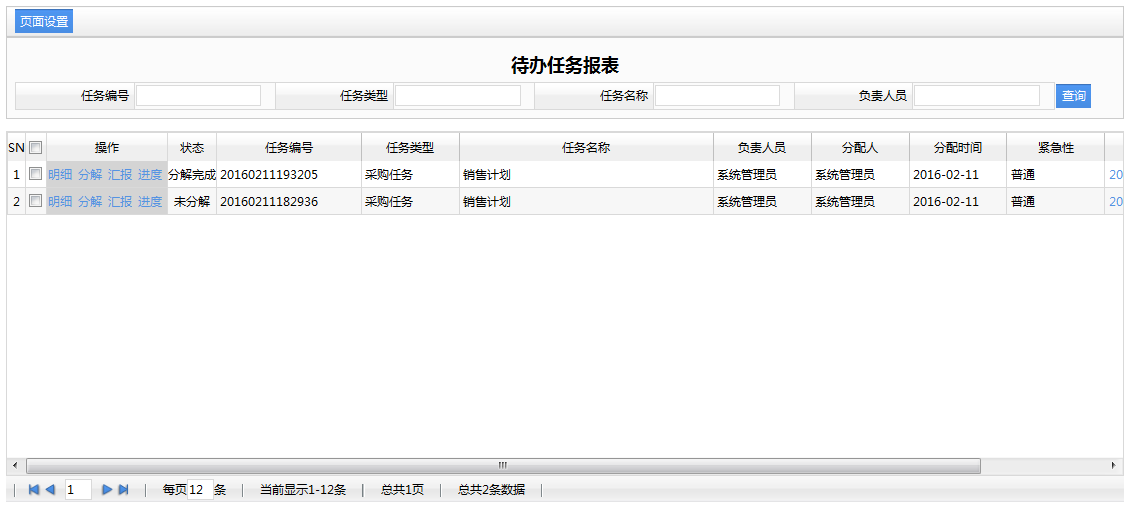 操作功能:頁(yè)面設(shè)置,明細(xì),進(jìn)度等查看功能