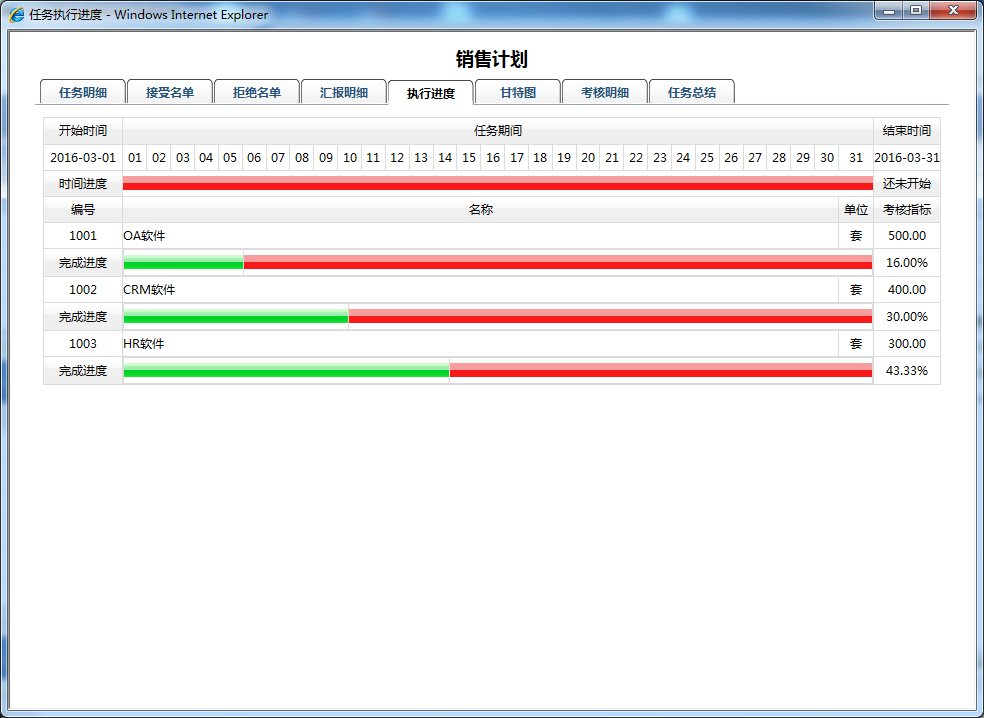 進(jìn)度是該計(jì)劃執(zhí)行的進(jìn)度情況,任務(wù)接受情況,任務(wù)匯報(bào)明細(xì),時(shí)間進(jìn)度及完成數(shù)據(jù),實(shí)時(shí)考核明細(xì),對(duì)此計(jì)劃進(jìn)行總結(jié)