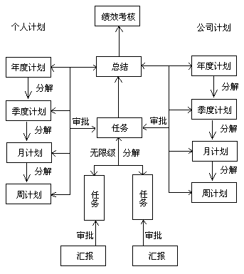 從上面流程圖可以看出,個(gè)人計(jì)劃,公司計(jì)劃,任務(wù)管理是緊密結(jié)合在一起的,是一個(gè)循環(huán)的整體。