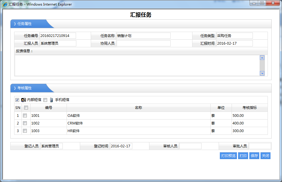 已匯報(bào)任務(wù)是下屬對(duì)任務(wù)作了匯報(bào)的綜合列表,只能查看明細(xì),審核,審批等操作