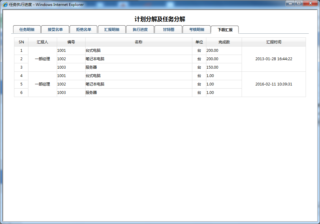 如果進(jìn)行多次分解,也可以看到下級(jí)分解的匯報(bào)情況