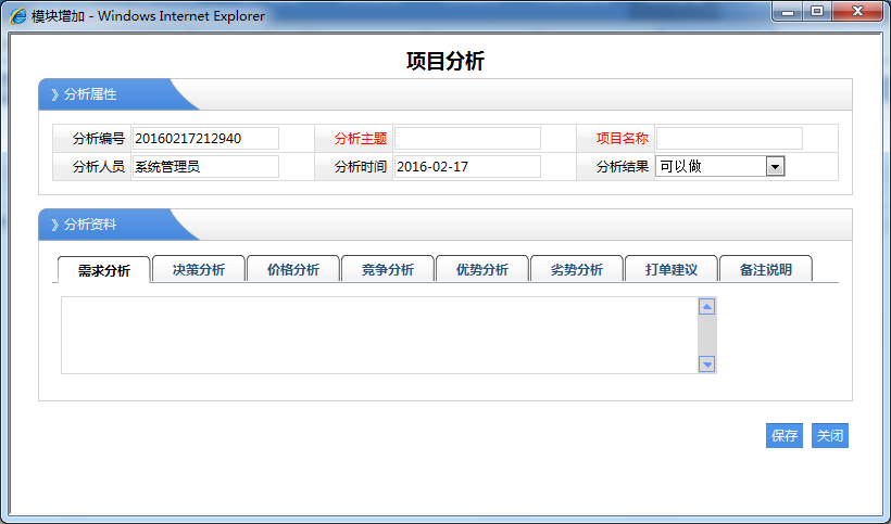 根據(jù)關(guān)于此項(xiàng)目的了解情況,把此項(xiàng)目關(guān)于客戶的需求,決策,價(jià)格,競(jìng)爭(zhēng),優(yōu)勢(shì),劣勢(shì)分析,以更好的準(zhǔn)備,贏得此項(xiàng)目。