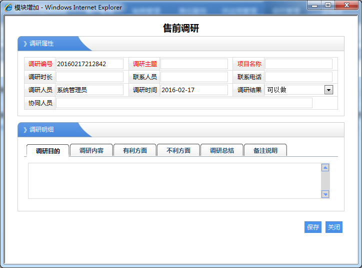 就是關(guān)于此項(xiàng)目的聯(lián)系情況,跟銷售管理的“聯(lián)系記錄”類似。