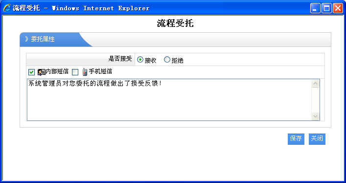 委托流程的對方,這里主要是是否接受對方的委托,如果接受其委托成功,拒絕則委托失敗。