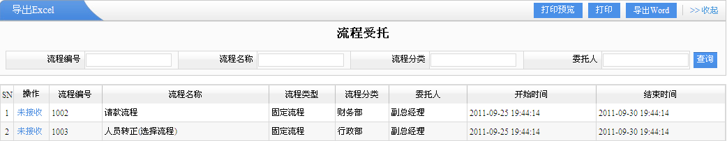 功能操作:打印預(yù)覽,打印,導(dǎo)出EXCEL,導(dǎo)出WORD,查詢,是否接受其委托等功能。
