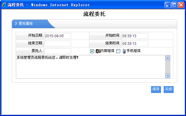 2、選擇委托:就是選擇某些流程后,再點擊“選擇委托”,則彈出要選擇的委托的人,時間段的信息。