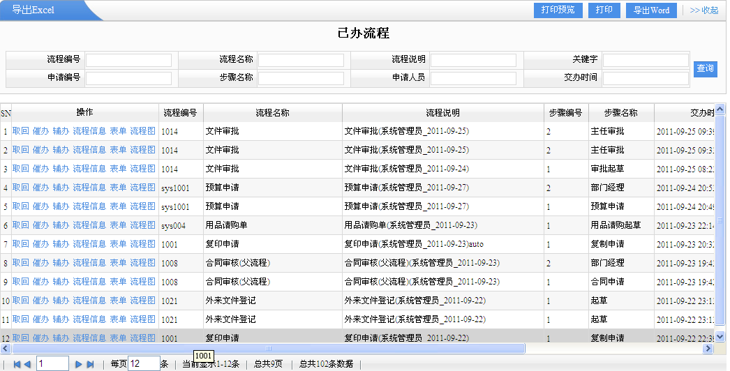 已經(jīng)已經(jīng)處理的流程列表詳細(xì)。