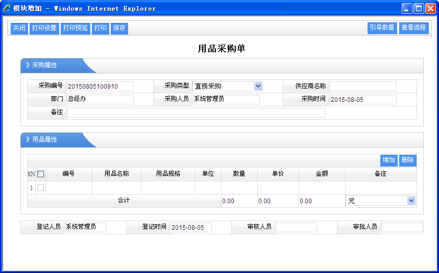 就是對用品的進(jìn)行購買登記的記錄,其增加的記錄可以在“用品采購表”中查詢