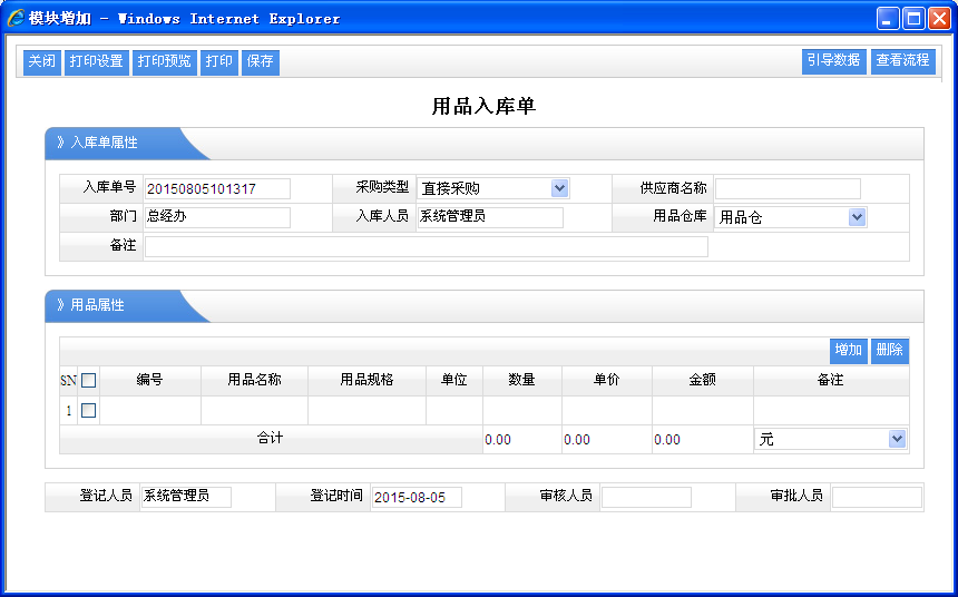 操作功能:頁面設(shè)置,打印設(shè)置,打印預(yù)覽,打印,增加,刪除,明細(xì),導(dǎo)出EXCEL,導(dǎo)出WORD,審核,反審核,審批,反審批等功能。