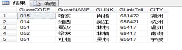 表3.顧客信息表 字段名稱 | 類 型 | 長 度 | 是否主鍵 | 說 明 | GuestCODE | varchar | 10 | 是 | 顧客代碼 | GuestNAME | varchar | 16 | 否 | 顧客名稱 | GLINK | varchar | 12 | 否 | 顧客聯(lián)系 | GLinkTell | varchar | 11 | 否 | 顧客電話 | CITY | varchar | 8 | 否 | 顧客所在城市 |