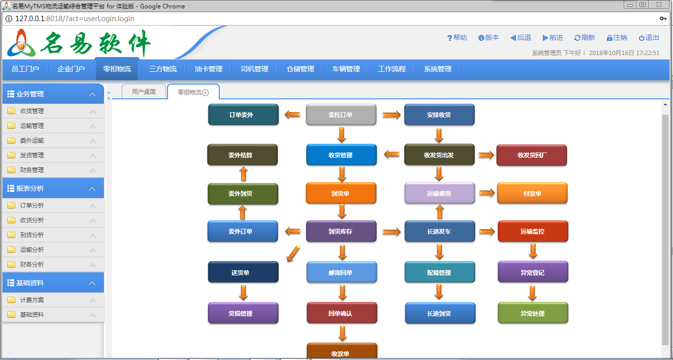 一、功能介紹 名易MyTMS物流運(yùn)輸管理平臺(tái)適用于運(yùn)輸公司、各企業(yè)下面的運(yùn)輸隊(duì)等,它主要包括訂單管理、配載作業(yè)、調(diào)度分配、行車管理、GPS車輛定位系統(tǒng)、車輛管理、人員管理、數(shù)據(jù)報(bào)表、基本信息維護(hù)、系統(tǒng)管理等模塊。該系統(tǒng)對(duì)車輛、駕駛員、線路等進(jìn)行全面詳細(xì)的統(tǒng)計(jì)考核,能大大提高運(yùn)作效率,降低運(yùn)輸成本,使您在激烈的市場(chǎng)競爭中處于領(lǐng)先優(yōu)勢(shì)。 1、零擔(dān)物流: 主要是針對(duì)物流公司自已收貨,自己運(yùn)輸,自己送貨,并且是小件多,貨物多的管理方式,支持多組織,多公司管理,其功能模塊有收貨管理,運(yùn)輸管理,委外運(yùn)輸,發(fā)貨管理,財(cái)務(wù)管理,以及報(bào)表分析 2、信息管理:信息管理從內(nèi)部郵件,外部系統(tǒng),系統(tǒng)短信,手機(jī)短信,微信信息,新聞,通知,公告,即時(shí)通訊等進(jìn)行全面的信息流通,削除信息孤島。 3、三方物流: 主要是針對(duì)物流公司專門給一些集團(tuán)公司做第三方運(yùn)輸?shù)墓芾恚С謱?duì)多個(gè)集團(tuán)公司的管理,不同的公司不同的運(yùn)輸價(jià),其功能有訂單管理,運(yùn)輸管理,監(jiān)控管理,回單管理,委托管理,財(cái)務(wù)管理,以及報(bào)表分析 4、知識(shí)管理:從文檔管理,網(wǎng)絡(luò)硬盤,圖片管理,自定義檔案管理進(jìn)行全面的知識(shí),內(nèi)容,檔案進(jìn)行管理;可以把個(gè)人與分司分別進(jìn)行管理;多元化的知識(shí)管理;對(duì)每個(gè)文件進(jìn)行豐富的權(quán)限管理;支持版本管理;支持多維度的查詢;進(jìn)行文件加密;Web在線OFFICE進(jìn)行編輯,并有留痕跡,簽章等;支持大文件的上傳及下載;支持圖片,及大圖片的上傳、下載及在線查看 5、辦公智能:辦公智能就是利用自動(dòng)化引擎技術(shù),把日常經(jīng)常要使用,并且有規(guī)律的動(dòng)用,無需人員干預(yù)的處理,讓系統(tǒng)自動(dòng)完成的事項(xiàng);自動(dòng)化的內(nèi)容都是可以自己根據(jù)自已的情況來進(jìn)行定制,如銷售自動(dòng)化,服務(wù)自動(dòng)化,辦公自動(dòng)化 6、司機(jī)管理:由于運(yùn)輸公司重要的資源就是之一,對(duì)公司的司機(jī)管理,也對(duì)其他公司,個(gè)人的司機(jī)進(jìn)行管理,方便集中調(diào)用資源,其功能用司機(jī)招聘管理,司機(jī)基本信息,事故管理,證件管理,合同管理,獎(jiǎng)懲管理,培訓(xùn)管理,意外險(xiǎn),黑名單,以司機(jī)備庫管理等 7、會(huì)議管理:對(duì)公司會(huì)議室及開會(huì)情況的管理,其主要功能有會(huì)議室設(shè)置,會(huì)議室狀態(tài),會(huì)議申請(qǐng),會(huì)議登記,會(huì)議記錄 8、油卡管理: 運(yùn)輸車輛在運(yùn)輸過程中需要加油,每次加油會(huì)產(chǎn)生費(fèi),不好進(jìn)行監(jiān)控,費(fèi)用管理,所以直接向中石油進(jìn)行購買油卡,然后向油卡進(jìn)行充值,司機(jī)就可以直接用油卡進(jìn)行加油了,其功能有油卡管理,充值管理,分油卡,付油卡,退油卡,以及油卡報(bào)表分析 10、倉儲(chǔ)管理:是對(duì)貨物進(jìn)行臨時(shí)存放的管理,一般物流公司也三方庫存,或客戶提貨沒有按時(shí)提貨則需要另收取倉租費(fèi)用。其功能有訂單管理,倉庫管理,倉庫盤點(diǎn),基礎(chǔ)資料,報(bào)表分析 11、車輛管理:對(duì)公司運(yùn)輸車輛進(jìn)行管理,其功能有車輛信息管理,車輛證件管理,車輛保險(xiǎn)管理,車輛維修,車輛保險(xiǎn),車輛費(fèi)用,事故管理等。 二、技術(shù)特點(diǎn) 名易MyTMS物流運(yùn)輸管理平臺(tái)運(yùn)用PHP+MySQL開發(fā)WEB運(yùn)用平臺(tái),采用AJAX實(shí)現(xiàn)異步刷新,降低網(wǎng)絡(luò)通訊、服務(wù)器的負(fù)貨。采用MVC三架構(gòu)設(shè)計(jì)模式。實(shí)現(xiàn)模型層(Model)、實(shí)現(xiàn)視圖層(View)、控制層(Controller)的分離,并且把視圖層再分層用戶視圖層,用戶可以隨便自定義頁面,把能更好地進(jìn)行維護(hù)、升級(jí)和優(yōu)化。 三、主要特點(diǎn) 1、字段級(jí)權(quán)限:完全每個(gè)字段每個(gè)按鈕,每個(gè)表單設(shè)計(jì),自動(dòng)生成字段對(duì)應(yīng)的權(quán)限,方便用戶對(duì)每個(gè)字段進(jìn)行控制 2、權(quán)限繼承:主要是下一級(jí)繼承上一級(jí)權(quán)限,不用再進(jìn)行設(shè)置。 3、橫向權(quán)限:橫向權(quán)限主要包含,角色權(quán)限,用戶組權(quán)限,用戶權(quán)限 4、自定義條件:功能模塊,流程條件,均可以自定義條件,那些用戶可以看到那些數(shù)據(jù) 5、自定義查詢:功能模塊,報(bào)表模塊,查詢的條件自定義。 6、縱向權(quán)限:縱向權(quán)限主要包含,角色上下等級(jí)權(quán)限,機(jī)構(gòu)部門上下等級(jí)權(quán)限 7、自定義列表顯示:可以自由的控制每個(gè)的顯示,以方便用戶進(jìn)行查看。 8、自定義系統(tǒng)流程:自定義流程并關(guān)聯(lián)的表單 9、離散權(quán)限:主要是針對(duì)每一條數(shù)據(jù)進(jìn)行不同的權(quán)限控制。 10、自定義工作流程:支持固定,自由,半自由流程;支持串行,并行,選擇,合并,子父流程;委托,受托,催辦,輔辦,督辦,預(yù)辦,代辦,調(diào)度,換人辦理,加簽,會(huì)簽,流程監(jiān)控等;支持WEB印章,手寫簽名,PDF簽章,WORD套紅等 11、