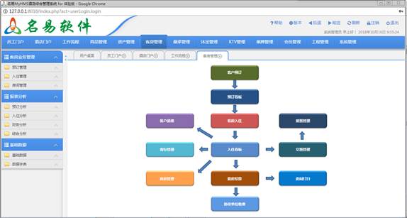 六、系統(tǒng)應(yīng)用的價(jià)值 1、縮短開發(fā)周期、降低開發(fā)成本。 通過使用名易名易MyHMS酒店綜合管理系統(tǒng)先進(jìn)的技術(shù)架構(gòu)和成熟的基礎(chǔ)架構(gòu),能夠縮短軟件系統(tǒng)的開發(fā)周期,降低開發(fā)成本和風(fēng)險(xiǎn),快速開發(fā)出企業(yè)的應(yīng)用系統(tǒng)。 2、降低維護(hù)成本。 協(xié)同平臺(tái)基礎(chǔ)架構(gòu)保證了軟件系統(tǒng)有良好的擴(kuò)展性和可維護(hù)性,同時(shí)還提供完善的開發(fā),維護(hù)的操作界面,能夠很大程度上降低軟件系統(tǒng)的維護(hù)成本。 3、降低實(shí)施的風(fēng)險(xiǎn)。 傳統(tǒng)的應(yīng)用系統(tǒng)常常是把某個(gè)功能模塊寫死在程序代碼中,不能靈活變通,如果該功能不能滿足公司的管理流程,那只能重新開發(fā),時(shí)間周期長(zhǎng),費(fèi)用高,風(fēng)險(xiǎn)高,實(shí)施難度大;而名易名易MyHMS酒店綜合管理系統(tǒng)完全支持企業(yè)業(yè)務(wù)流程進(jìn)行靈活定制的開發(fā),完全基于模塊的調(diào)用,即使沒有相應(yīng)的模塊,通常寫一個(gè)模塊也是很方便,快速的。從面保證了快速成功實(shí)施。 4、降低部署和使用成本。 PHP+MySQL+Apache對(duì)硬件配置要求都比較低,運(yùn)行速度非常的快,安裝配置非常的簡(jiǎn)單容易;并且大部份都采用了AJAX技術(shù),實(shí)現(xiàn)異步刷新,減少了系統(tǒng)頁(yè)面數(shù)據(jù)的傳遞,只傳數(shù)據(jù)。因此能夠降低客戶的部署和使用成本,充分適應(yīng)不同類型和規(guī)模的客戶的應(yīng)用需要。 5、協(xié)同的資源交互,實(shí)時(shí)更新各種信息,內(nèi)部信息交流大大增強(qiáng) 。 6、協(xié)同的信息管理,消除信息孤島,實(shí)現(xiàn)知識(shí)和信息共享。 7、科學(xué)的接待流程,使各部門在用戶交互和事務(wù)處理中實(shí)現(xiàn)流暢的協(xié)同工作。 8、豐富的報(bào)表功能使管理部門更容易進(jìn)行數(shù)據(jù)分析,及時(shí)發(fā)現(xiàn)并解決問題 。 9、不斷優(yōu)化企業(yè)組織架構(gòu),及時(shí)發(fā)現(xiàn)高素質(zhì)、高效能人才。 10、提升快速響應(yīng)能力,提高工作效率。 總之:名易名易MyHMS酒店綜合管理系統(tǒng)完全基于“菜單+表單+模塊+流程+報(bào)表+權(quán)限”實(shí)現(xiàn)無(wú)需寫程序代碼進(jìn)行二次開發(fā),快速開發(fā)出適合自己的業(yè)務(wù)系統(tǒng),以滿足“隨需應(yīng)變”的需求!搭建安全的應(yīng)用管理平臺(tái)! 宗旨:滿足客戶未來(lái)的需求! 七、系統(tǒng)展示 下面進(jìn)行軟件界面截圖以及簡(jiǎn)單說(shuō)明