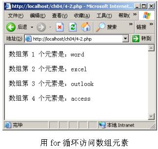 PHP的一個(gè)優(yōu)勢(shì)就是提供了豐富的函數(shù),用來(lái)處理各種類(lèi)型的數(shù)據(jù)、完成一些相對(duì)復(fù)雜、經(jīng)常性、重復(fù)性多或者和底層有關(guān)的操作。這些函數(shù)都可以在程序中直接使用。從本章開(kāi)始,本書(shū)就為讀者介紹這些PHP內(nèi)置函數(shù)的用法。這一章主要講述一些和數(shù)組處理有關(guān)的常用PHP函數(shù)。 1 建立數(shù)組的方法 在第2章介紹數(shù)據(jù)類(lèi)型時(shí),已經(jīng)介紹過(guò)建立數(shù)組的方法。本節(jié)對(duì)建立數(shù)組的方法做進(jìn)一步的說(shuō)明。使用PHP的array()語(yǔ)言結(jié)構(gòu)可以創(chuàng)建一個(gè)數(shù)組,如下代碼所示。 $ms_office = array(“word”,”excel”,”outlook”,”access”); 上述代碼創(chuàng)建了一個(gè)名叫$ms_office的數(shù)組,它包含4個(gè)單元,每個(gè)單元存儲(chǔ)1個(gè)值,這些值是:word、excel、outlook和access,這些值也被稱(chēng)為數(shù)組元素。注意,這里的array()不是函數(shù),它只是PHP的語(yǔ)言結(jié)構(gòu)。 數(shù)組的索引又叫“鍵值”或者“下標(biāo)”。使用“=>”運(yùn)算符,可以為數(shù)組指定索引和值。它的語(yǔ)法格式是:“索引=>值”,每對(duì)“索引=>值”之間使用逗號(hào)“,”分開(kāi)。如下代碼使用“=>”為數(shù)組指定索引和值。 2 輸出數(shù)組元素的方法 在實(shí)際開(kāi)發(fā)中,經(jīng)常要訪問(wèn)數(shù)組的值。如果每次都按數(shù)組索引來(lái)取數(shù)值元素,會(huì)非常麻煩。在PHP中可以通過(guò)各種循環(huán)來(lái)快速訪問(wèn)數(shù)組元素。本節(jié)就介紹常用的for和foreach。 2.1 使用for循環(huán)語(yǔ)句輸出數(shù)組元素 對(duì)于一個(gè)按整數(shù)順序索引的數(shù)組,可以通過(guò)for循環(huán)語(yǔ)句,來(lái)依次訪問(wèn)數(shù)組元素,