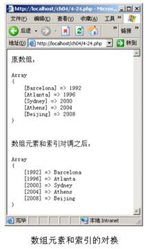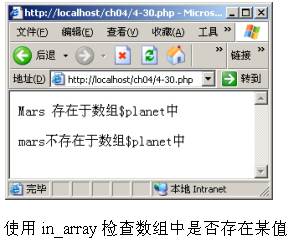 4.19.2 獲取數(shù)組中當(dāng)前單元的索引值 代碼(詳細(xì)內(nèi)容請(qǐng)參照本書(shū))演示了函數(shù)key的用法。這段程序首先將當(dāng)前指針指向數(shù)組的最后一個(gè)單元,然后通過(guò)函數(shù)key獲取當(dāng)前元素(即最后一個(gè)元素)的索引值。