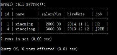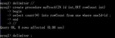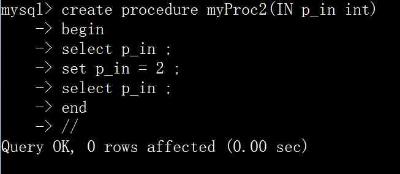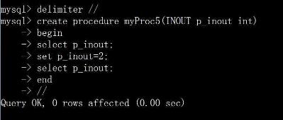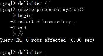 存儲(chǔ)過(guò)程 1、創(chuàng)建 delimiter // --修改分隔符,否則將以;作為結(jié)束符 create procedure myProc() –創(chuàng)建存儲(chǔ)過(guò)程 begin select * from salary ; end // delimiter ; --考慮使用習(xí)慣,將分隔符改為;  2、執(zhí)行存儲(chǔ)過(guò)程  3、創(chuàng)建帶IN參數(shù)的存儲(chǔ)過(guò)程 delimiter // create procedure myProc1(IN id int ) —用IN表示該參數(shù)為輸入?yún)?shù) begin select * from one where oneId=id; end //  delimiter ; set @id=13 ;--設(shè)置參數(shù)值 call myproc1(@id);--調(diào)用存儲(chǔ)過(guò)程  4、IN參數(shù)不能修改參數(shù)值 delimiter // create procedure myProc2(IN p_in int) begin select p_in ; set p_in=2;--設(shè)置輸入?yún)?shù)值 select p_in; end //  delimiter ; call myProc2(@p_in);--在存儲(chǔ)過(guò)程中p_in參數(shù)值會(huì)改變  存儲(chǔ)過(guò)程執(zhí)行完后,參數(shù)值p_in 并沒(méi)有改變。  5、帶OUT參數(shù)的存儲(chǔ)過(guò)程 delimiter // create procedure myProc3(OUT rowCount int) begin select count(*) into rowCount from one ; end //  delimiter ; select count(*) from one ;  select @rowCount ;  call myProc3(@rowCount);  6、IN和OUT參數(shù)一起使用 delimiter // create procedure myProc4(IN id int,OUT rowCount int) begin select count(*) from one where oneId=id ; end // delimiter ;  設(shè)置輸入?yún)?shù)id SET @id=13;  調(diào)用參數(shù)過(guò)程 call myProc4(@id,@rowCount);  7、INOUT參數(shù) delimiter // create procedure myProc5(INOUT p_inout int) begin select p_inout; set p_inout = 2 ; select p_inout ; end //  delimiter ; --執(zhí)行存儲(chǔ)過(guò)程之前  call myProc5(@p_inout); --執(zhí)行存儲(chǔ)過(guò)程之后   8、存儲(chǔ)過(guò)程的應(yīng)用 create procedure AddHuman(IN hName varchar(20),IN hAddress varchar(20)) begin DECLARE hId int ; set hId=0 ; select houseId into hId from house where houseAddress=hAddress ; insert into human(humanId,humanName,houseId) values(null,hName,hId); end create procedure AddHuman1(IN hName varchar(20),IN hAddress varchar(20)) begin DECLARE hId int ; set hId=0 ; select houseId into hId from house where houseAddress=hAddress ; if hId >0 then insert into human(humanId,humanName,houseId) values(null,hName,hId); end if ; end