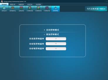 冷卻塔系統(tǒng)監(jiān)控界面中可實時查看系統(tǒng)中冷凍水泵的運行狀態(tài)參數(shù),包括冷卻塔運行狀態(tài)(運行停止)、工作模式(正常就地旁路)、故障狀態(tài)、設(shè)備實時功率、設(shè)備實時運行頻率、三相電流、三相電壓; 在界面的右面可以對系統(tǒng)中的設(shè)備進行選擇,可顯示冷卻塔的一些統(tǒng)計參數(shù),包括當(dāng)天累計時間、總共累計時間、當(dāng)天累計電量、總共累計電量、當(dāng)天開機時間和當(dāng)天關(guān)機時間等。 系統(tǒng)操作員可以通過左上角的設(shè)備啟停按鈕來啟停設(shè)備,當(dāng)點擊運行/停止按鈕時,系統(tǒng)會彈出相應(yīng)的提示框確認操作,當(dāng)操作確認成功后,系統(tǒng)會對設(shè)備發(fā)送相應(yīng)的啟停命令,實現(xiàn)對設(shè)備的啟停操作。 控制策略選擇界面