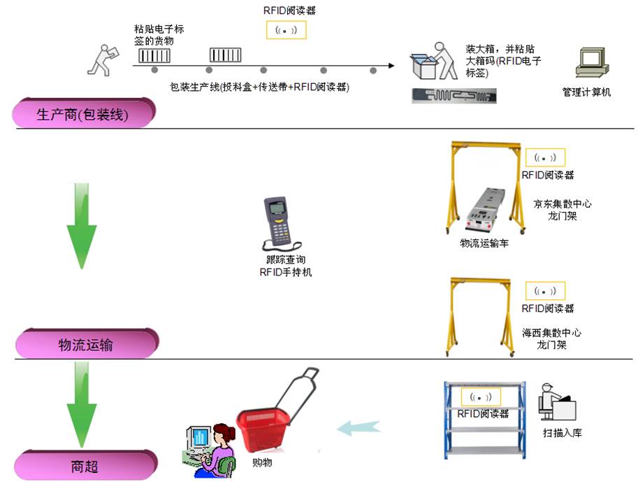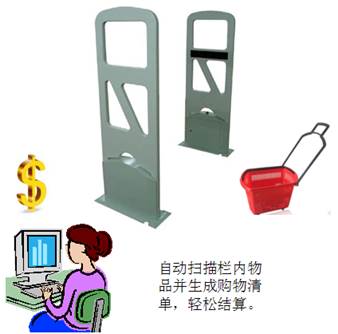 1.3.4 超市收銀日常商超消費(fèi)中,最讓用戶苦惱的是排隊(duì)付費(fèi)。由于要逐個(gè)貨品清點(diǎn)結(jié)算,因此超市付費(fèi)排隊(duì)現(xiàn)象已成慣例。在本環(huán)節(jié),通過安裝多標(biāo)簽閱讀器,短短幾秒便一次性將欄內(nèi)所有物品全部掃描,自動生成消費(fèi)清單,極大減少了收銀員的工作量,是未來智能商超的一大發(fā)展方向。