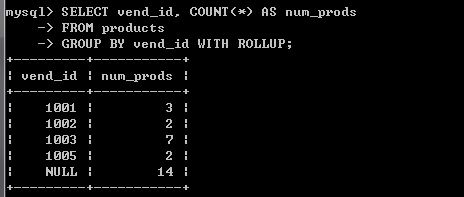 第一章 分組數(shù)據(jù) 如何分組數(shù)據(jù),以便能匯總表內(nèi)容的子集。 13.1 數(shù)據(jù)分組  目前為止的所有計(jì)算都是在表的所有數(shù)據(jù)或匹配特定的WHERE子句的數(shù)據(jù)上進(jìn)行的。 13.2 創(chuàng)建分組  A. GROUP BY子句指示MySQL分組數(shù)據(jù),然后對(duì)每個(gè)組而不是整個(gè)結(jié)果集進(jìn)行聚集。 B. GROUP BY子句可以包含任意數(shù)目的列。除了聚集計(jì)算語(yǔ)句外,SELECT語(yǔ)句中的每個(gè)列都必須在GROUP BY子句中給出。 C. 如果在GROUP BY子句中嵌套了分組,數(shù)據(jù)將在最后規(guī)定的分組上進(jìn)行匯總。在子句中列出的每個(gè)列都必須是檢索列或有效的表達(dá)式。 D. 如果分組中具有NULL值,則NULL將作為一個(gè)分組返回。 E. GROUP BY子句必須出現(xiàn)在WHERE子句之后,ORDER BY子句之前。 F. 使用WITH ROLLUP關(guān)鍵字,可以得到每個(gè)分組以及每個(gè)分組匯總級(jí)別(針對(duì)每個(gè)分組)的值。