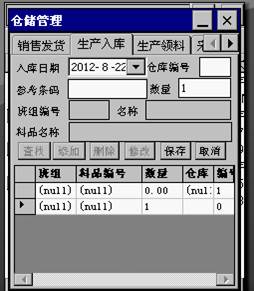 發(fā)貨日期:默認(rèn)為PDA系統(tǒng)日期 倉庫編號(hào):發(fā)貨倉庫的倉庫編碼。 經(jīng)理編號(hào):貨物歸屬的市場(chǎng)經(jīng)理編號(hào)。 名稱:市場(chǎng)經(jīng)理的名稱,錄入經(jīng)理編號(hào)后系統(tǒng)自動(dòng)帶出 料品編號(hào):發(fā)出料品的編碼,可由PDA設(shè)備的激光條碼采集,按回車或TAB鍵時(shí)半角自動(dòng)進(jìn)入發(fā)貨計(jì)劃表選擇界面,必須正確選擇相關(guān)參考資料后方可保存。 發(fā)貨數(shù)量:發(fā)出物料的數(shù)量。 料品名稱:發(fā)出料品的名稱,由系統(tǒng)自動(dòng)帶出。 ● 生產(chǎn)入庫