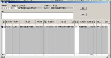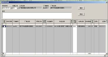 在抬頭白色欄錄入相對(duì)應(yīng)的內(nèi)容(發(fā)貨時(shí)間,貨運(yùn)方式,出貨倉庫,到貨地,短運(yùn)費(fèi)標(biāo)識(shí),短運(yùn)司機(jī),備注及出貨單說明) 在明細(xì)表中選擇需要處理的數(shù)據(jù),其中白色列如倉庫及貨運(yùn)公司可以進(jìn)行二次維護(hù)。 點(diǎn)擊確定后如提示選擇單據(jù)前綴則選擇前綴,(如無提示則系統(tǒng)默認(rèn)指定一個(gè)前綴),處理完成后自動(dòng)刷新銷售發(fā)貨列表的內(nèi)容(待處理的記錄狀態(tài)由OP變?yōu)镃L,并返回生成銷售發(fā)貨單的單號(hào))。 ● 生產(chǎn)入庫數(shù)據(jù)處理
