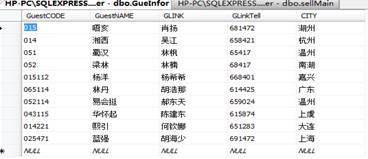 表3.顧客信息表 字段名稱 | 類 型 | 長 度 | 是否主鍵 | 說 明 | GuestCODE | varchar | 10 | 是 | 顧客代碼 | GuestNAME | varchar | 16 | 否 | 顧客名稱 | GLINK | varchar | 12 | 否 | 顧客聯(lián)系 | GLinkTell | varchar | 11 | 否 | 顧客電話 | CITY | varchar | 8 | 否 | 顧客所在城市 |