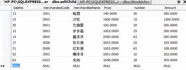 表2.商品信息表 字段名稱 | 類 型 | 長 度 | 是否主鍵 | 說 明 | merchandiseCode | varchar | 6 | 是 | 商品編碼 | merchandiseName | varchar | 8 | 否 | 商品名 | MerKindeCode | varchar | 10 | 否 | 商品種類代碼 | Price Money | int |