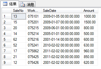 表4.商品銷售主表 字段名稱 | 類 型 | 長 度 | 是否主鍵 | 說 明 | SaleNo | varchar | 4 | 是 | 銷售編號 | WorkNo | varchar | 10 | 否 | 工作編號 | SaleDate | dtetime |